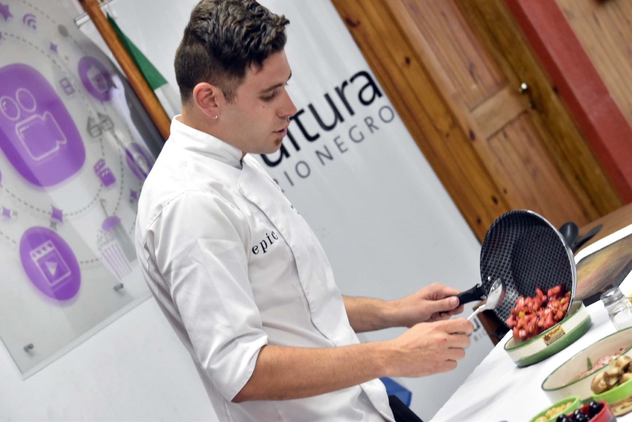 Una escena mientras cocinaba en una clase abierta que dio días atrás en Río Colorado.