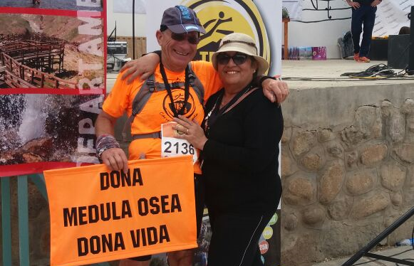 Su primera carrera fueron 7 kilómetros y a partir de ese momento se le ocurrió utilizar una bandera con el mensaje: “Dona Médula Ósea, Dona Vida”. “Fue una manera de colaborar con mi señora, mostrando la frase para que se visibilice la donación y llegué a jóvenes y adultos”.