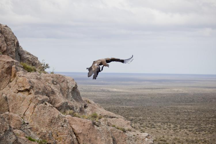 El viernes cuatro ejemplares de cóndor andino se sumaron a los 45 que ya sobrevuelan la meseta compartida por Río Negro y Chubut. En ese paisaje increíble buscan carroña para vivir y cuevas para anidar en las sierras que forman la geografía del territorio patagónico.