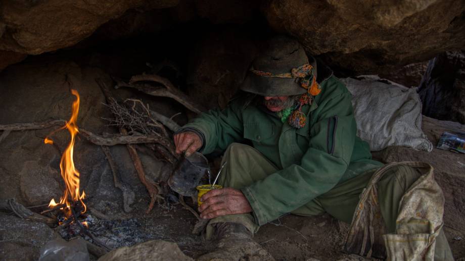 El último temporal de lluvia y nieve en el norte neuquino sorprendió a don Hernández de regreso con sus animales a las tierra de invernada. El fotógrafo y guardafauna Martín Muñoz lo encontró cuando se guarecía entre las piedras y trataba de hacer fuego para tomar unos mates, secar la ropa y veía pasar a los camionetas que buscaban a turistas atrapados. Aquí, sus imágenes y su relato.