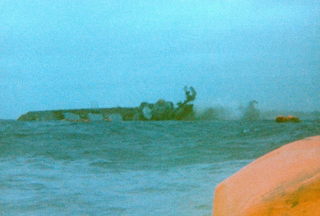 Se dio la orden de abandono y cuando se asomó a la borda pudo tomar magnitud de lo que estaba pasando: “hombres nadando tratando de aferrarse a algo, restos de todo tipo flotaban en el agua y golpeaban el casco por la fuerza del viento y las olas”.