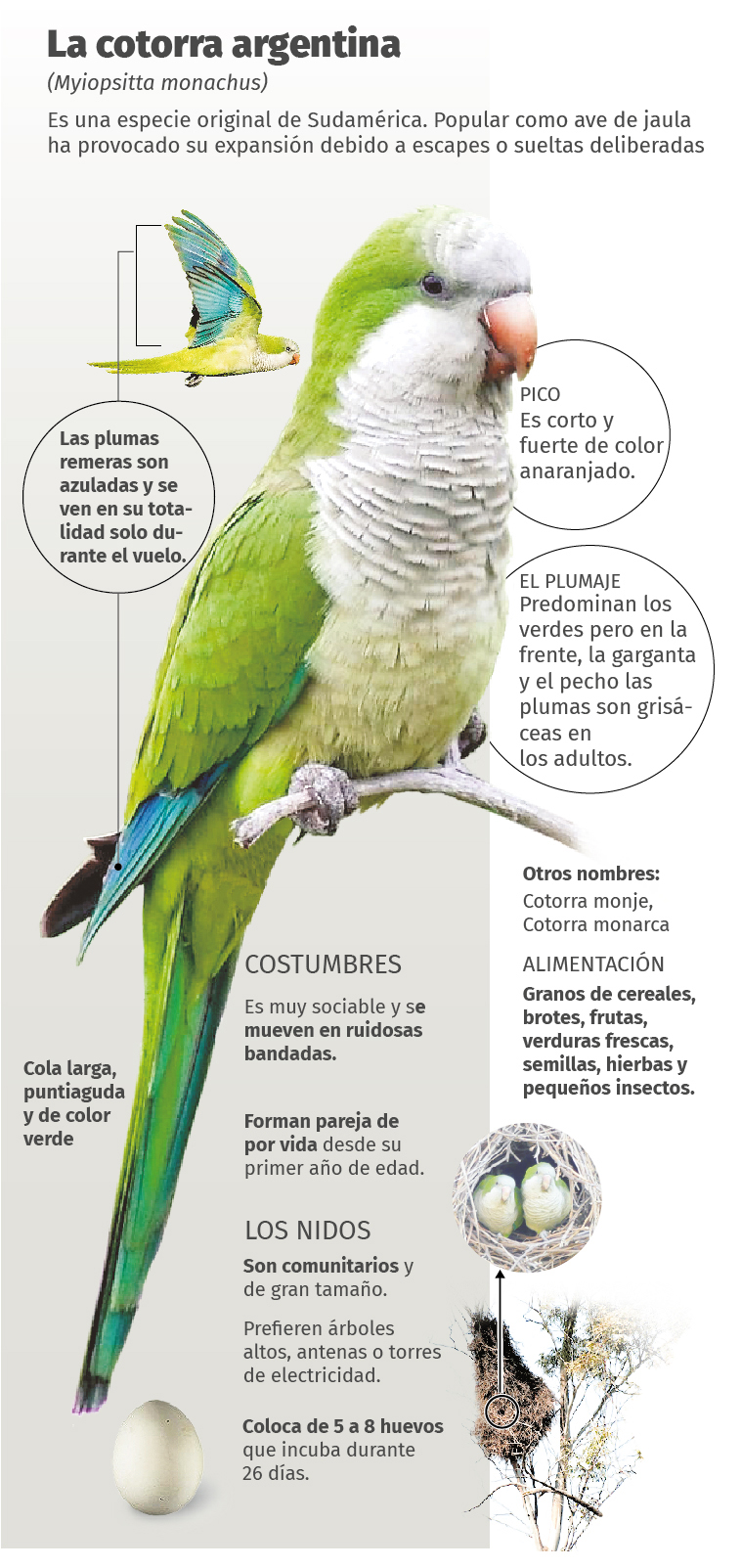 Tanto es el impacto en la región, el país y el mundo, que la llaman demonio verde, maldito perico, pericos indeseables. De ahí a la denominación más formal como cotorra argentina (Myiopsitta monachus) perico monje o cotorra monarca. En el norte argentino la llaman catita o cata verde y en algunos casos paloma chica.