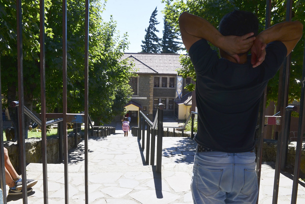 Desde lejos, un padre observa a su hija ingresar a la Escuela 16, en el centro de Bariloche. Foto: Alfredo Leiva