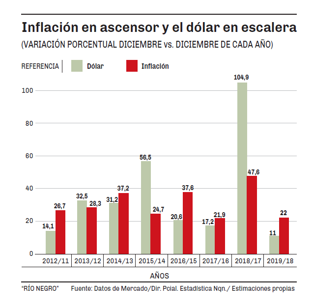 Lo sucedido en 2018 y lo que va de 2019, es una muestra acabada. El año pasado, el precio del dólar se incrementó un 104%, mientras que la inflación anual registró un 47,6%. En pocas palabras, el dólar aumentó el doble que el promedio de los bienes y servicios. Ello solo se explica si el salto en la cotización incluye la corrección del atraso acumulado en los años previos. Este año en cambio, mientras que la inflación del periodo enero-mayo asciende al 22%, el precio de la divisa solo creció un 11%, iniciando una nueva ronda de atraso.