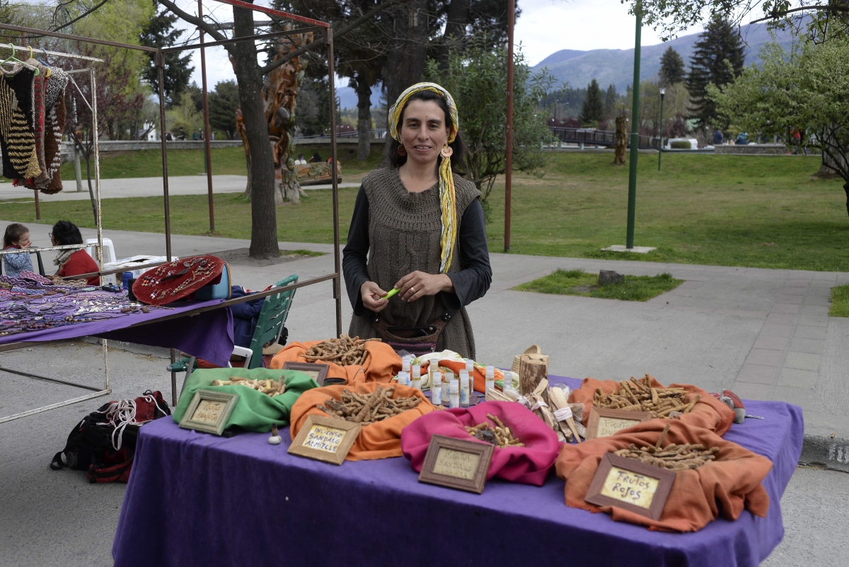 Cada martes, jueves y sábado, Romina Rubin vende sahumerios en la feria de artesanías. Tiene tres hijos, de 1, 9 y 10 años . Estos ingresos le permiten llegar a fin de mes. “Somos todos laburantes en la toma. Yo levanté mi casa con mis manos, con mi trabajo. Es todo a pulmón”, dice la mujer de 36 años.