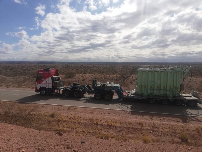 El transformador de potencia viaja desde el norte hasta la estación La Paloma.