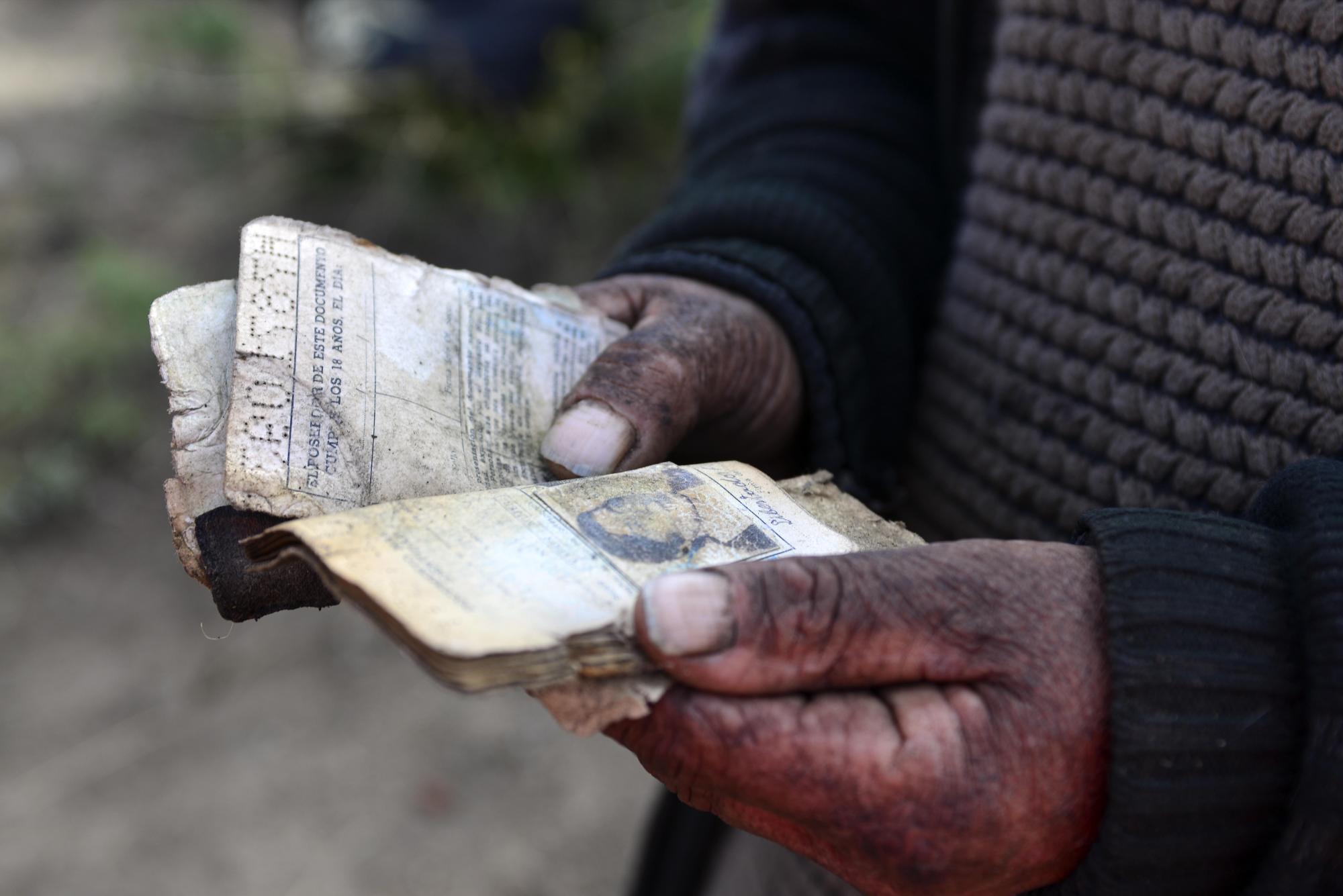 “Me gusta la soledad”, respondió el hombre, que aprendió a convivir con el silencio. Dijo que su primer nombre es Argentino, pero en su deteriorado documento, que rescató de entre las cenizas, sólo figura Libertador Aranea, nacido un 10 de mayo de 1950. La foto desgastada muestra a un joven lleno de vitalidad, de abundante cabellera negra y tez blanca.