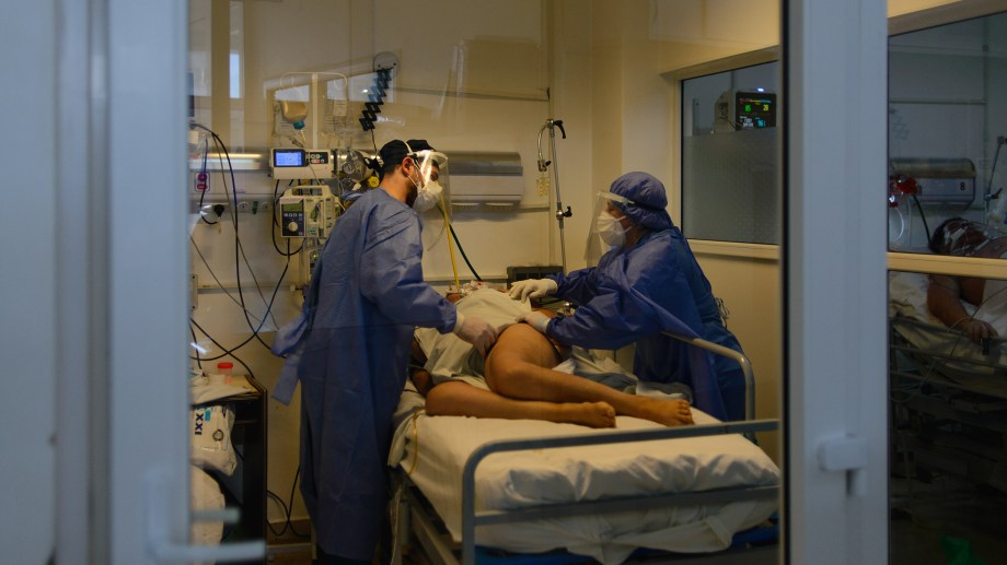 La escena se repite una y otra vez. Terminan de evaluar a un paciente intubado, aguardan apenas unos segundos en el pasillo para ingresar a otra sala donde otro paciente aguarda en las mismas condiciones. Unos metros más adelante, ven pasar a los camilleros que trasladan alguien más que quizás también termine en terapia intensiva.