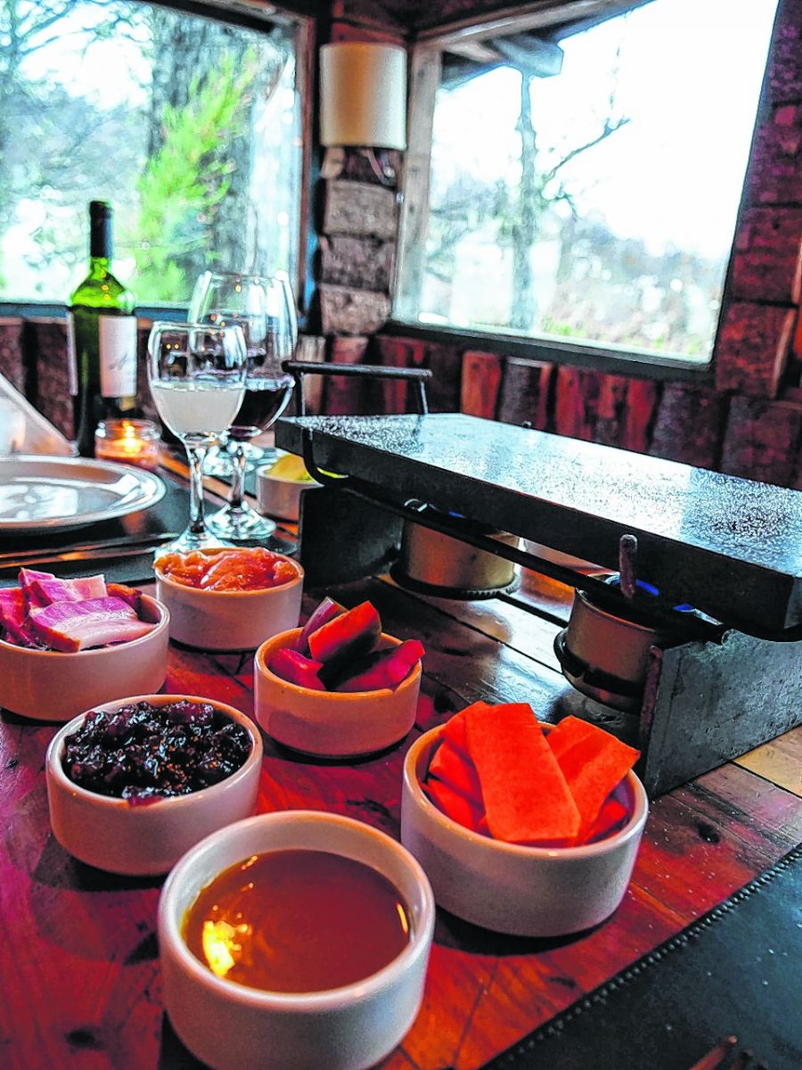 La Casita del Bosque fue construida en madera hace 35 años entre las lengas y funciona como parador durante el día (podés comer por ejemplo una milanesa con puré por $ 450 y $ 100 un agua, porción de torta $ 210 con una vista increíble en el deck) pero a la noche se enciende con un programón: vas en moto de nieve hasta la cota 1350, cruzás un arroyo por un puente colgante iluminado y disfrutás de una entrada con ahumados regionales (ciervos, trucha, jabalí) dos opciones de menú principal: fondue de quesos o carnes (vaca, cerdo, pollo y además panceta) y vegetales cocinados sobre piedra caliente, postre (brownie, helado, apple crumble con helado, tortas) café y bebida (no está incluido el vino, hay opciones desde $ 450 a $ 850). Por persona: $ 1950. Reservas Whatsapp:5492944586968.