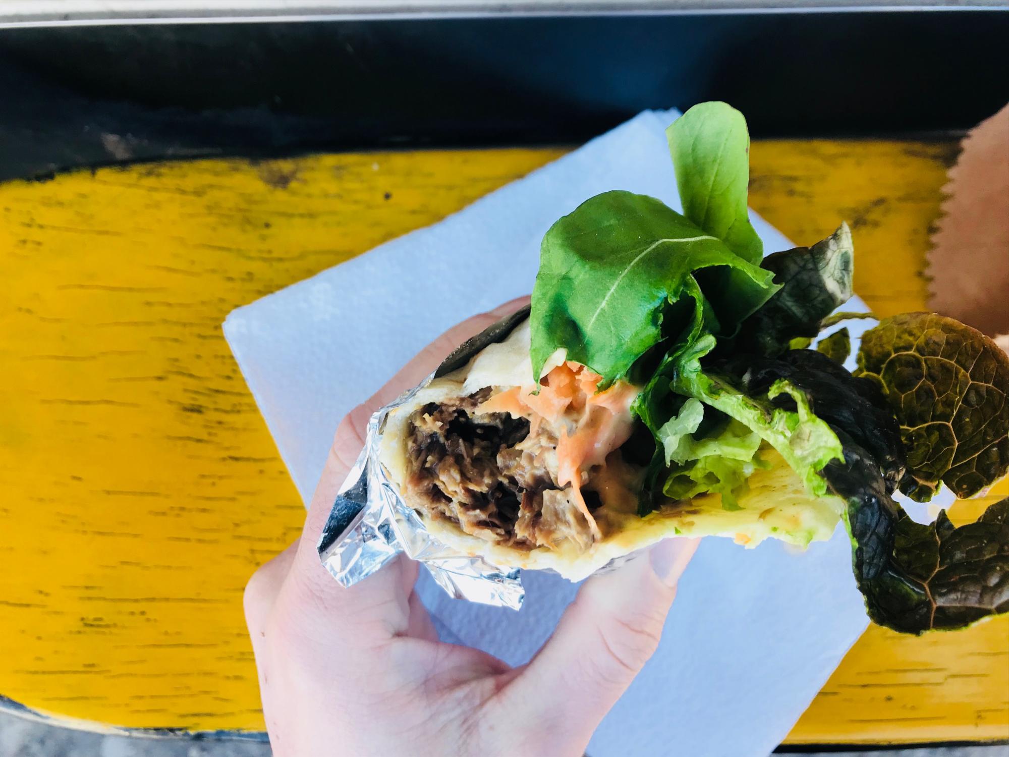 Mucha es la gente que pasa y consume los menús. La carne de los wraps lleva un braseado de tres horas. Realmente son una delicia y muy fáciles de comer. Tanto el pan, como las tortillas son geniales.