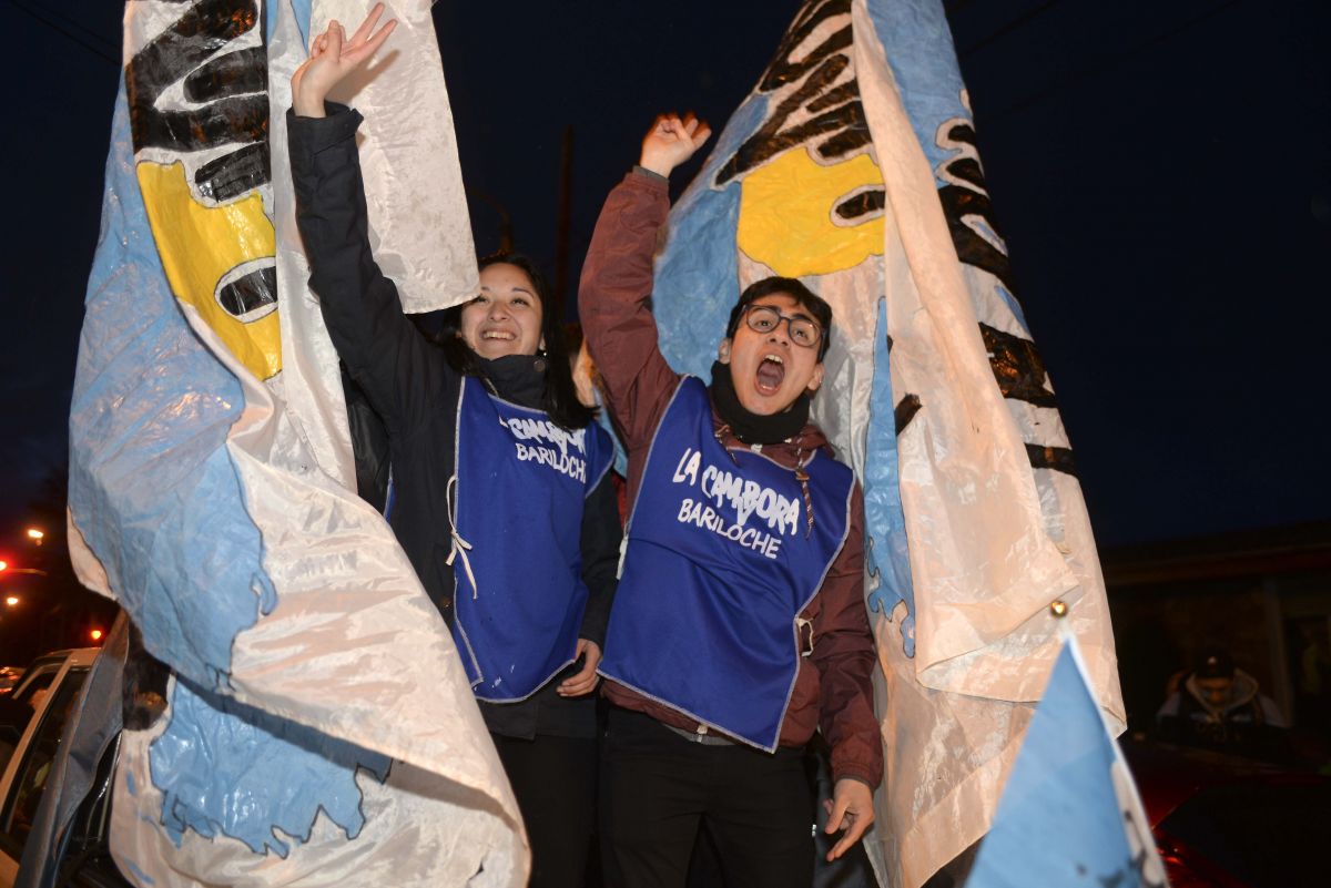 Militantes de La Cámpora festejan en Bariloche. Foto: Alfredo Leiva