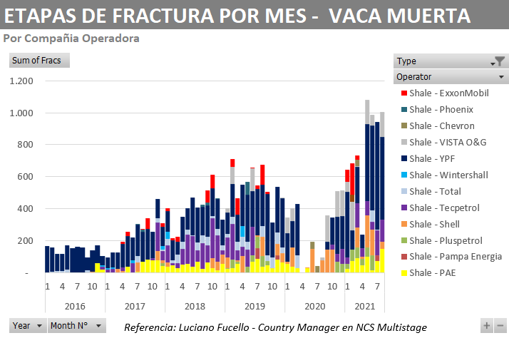 En ese año, los diversos yacimientos sumaron un total de 6.405 etapas de fractura, un nivel que se estima será superado en pocos días más ya que al 31 de agosto se han realizado 6.312 etapas de fractura.