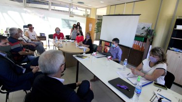 La reunión fue convocada por la ministra de Educación, Cristina Storioni y asistieron los ministros de Economía, Guillermo Pons y de Gobierno, Vanina Merlo.