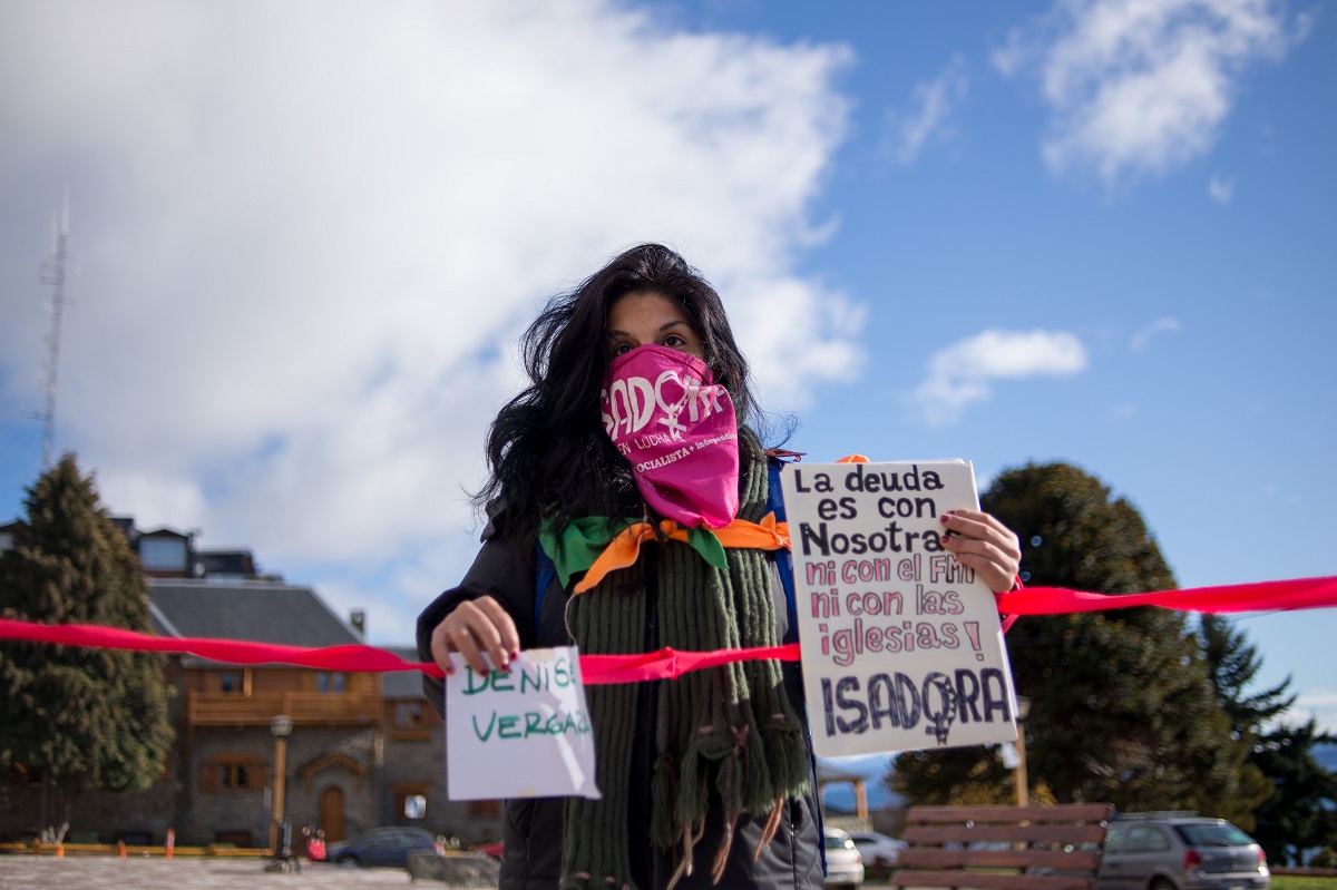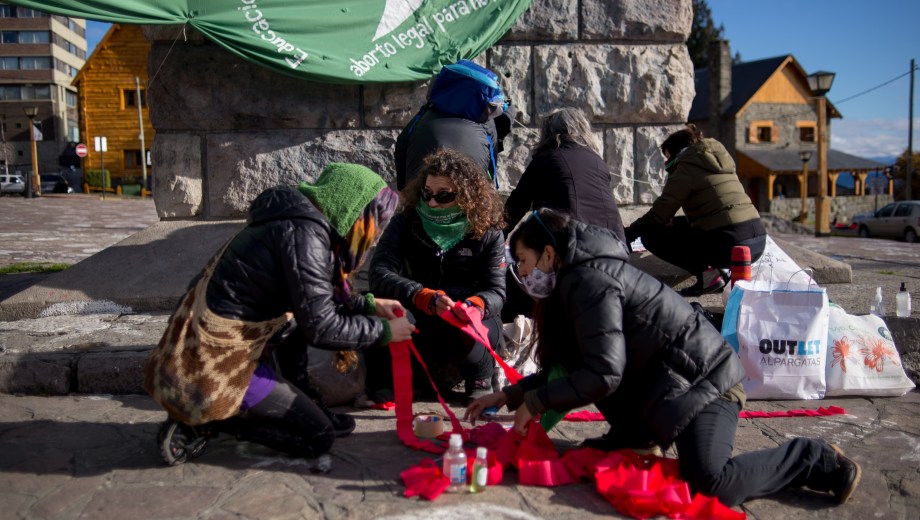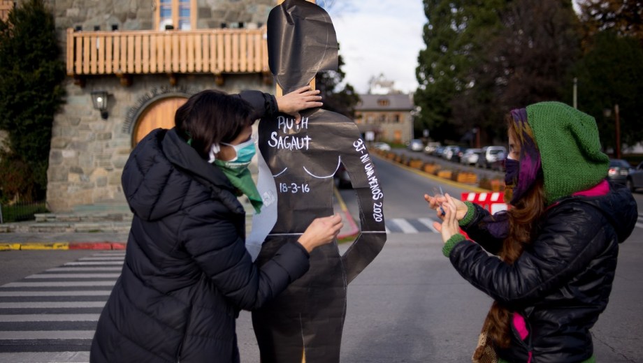 Un enorme pañuelo verde de la campaña por el aborto legal, seguro y gratuito, colgó desde el monumento a Julio Argentino Roca y dio inicio a una red de carteles con datos vinculados a la problemática. Ademas se exhibieron siluetas negras con nombres de víctimas de femicidio entre los que se encontraba una pequeña reseña de Nahiara, la niña de 3 años que fue asesinada el mes pasado en un paraje cercano a Los Menucos, en la Región Sur rionegrina.
