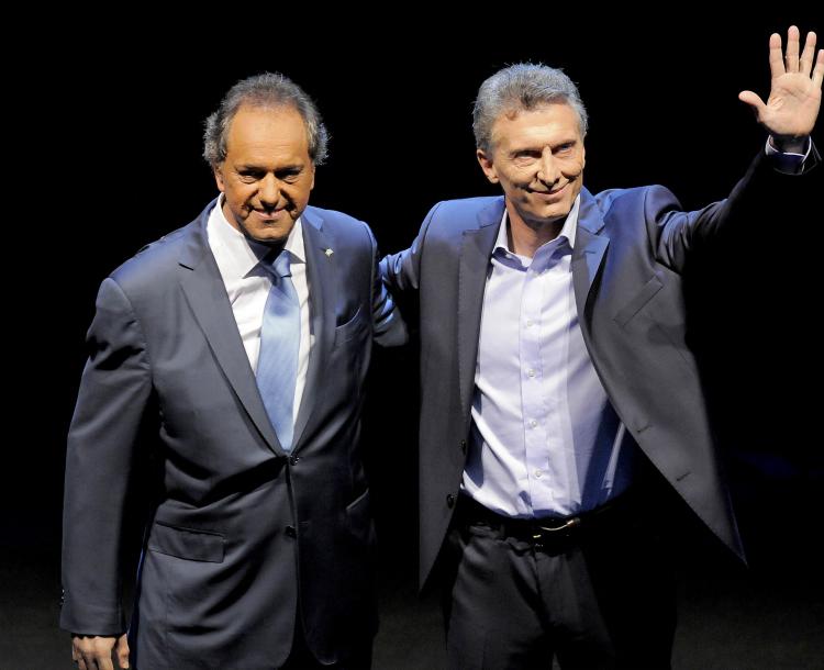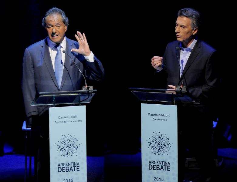 Daniel Scioli (FpV) y Mauricio Macri (Cambiemos) se enfrentaron ayer domingo en un debate lleno de cruces, en el que el gobernador bonaerense insistió con que habrá “ajuste” y “devaluación” si su contrincante resulta electo, mientras que el jefe de gobierno porteño lo acusó de “ser la continuidad” del kirchnerismo (Fotos DyN).
