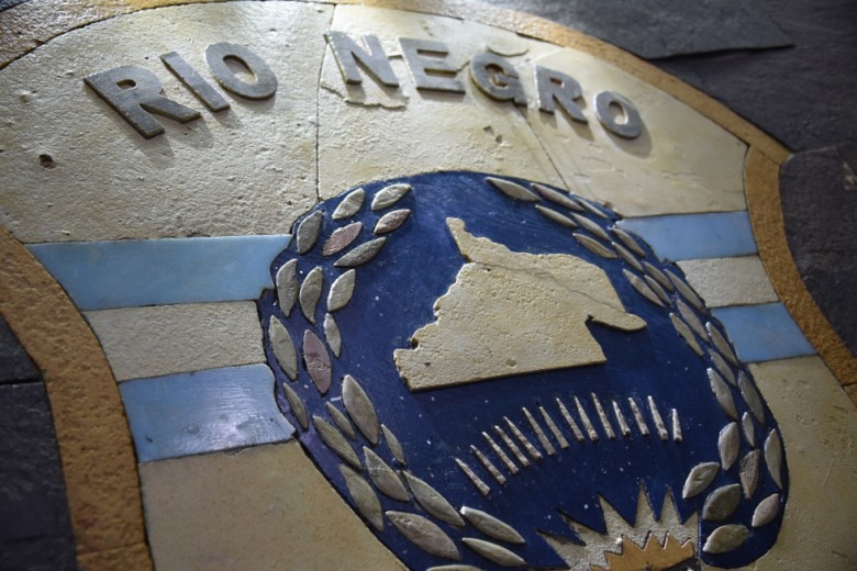 El imponente escudo que luce el recinto de la Legislatura de Río Negro, demandó más de dos meses de trabajo y 418 piezas. “Fillol” tuvo de trabajar 4000 kilos de piedra de distintas características y colores. Una de ellas, de color “azul palacio”, la consiguió en Chile; otras en Zapala y el resto en Los Menucos y la zona.
