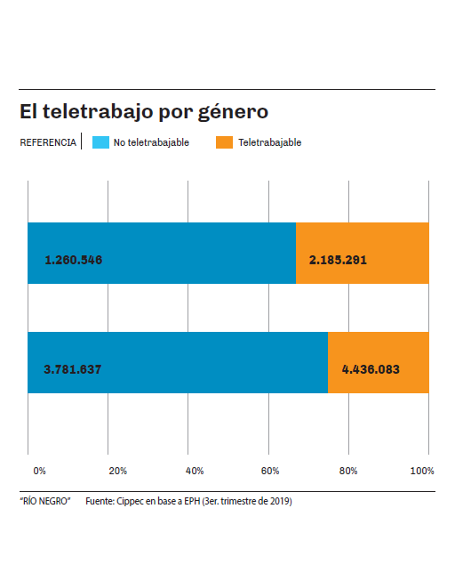 - El porcentaje de las tareas técnicas que potencialmente puede realizarse desde la casa. Entre los profesionales, la proporción llega al 55,3%.