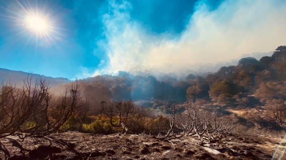 El ministro de Turismo, Sandro Badilla, detalló en AM750 Neuquén que en los últimos dos días , el fuego no ha podido avanzar, pero arrasa el bosque de especies nativas e implantadas que hay en ese perímetro.
