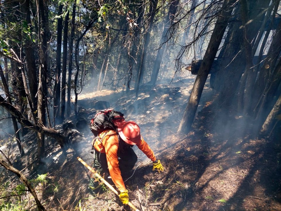 Brigadistas de parques nacionales trabajan desde hace más de diez días en el incendio de lago Martin. Gentileza