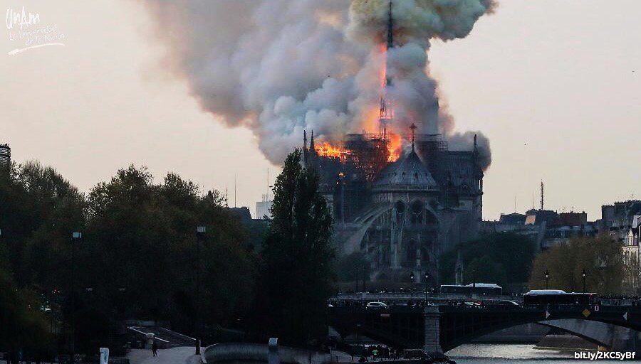 Conmoción mundial por el siniestro que derrumba el histórico edificio parisino.