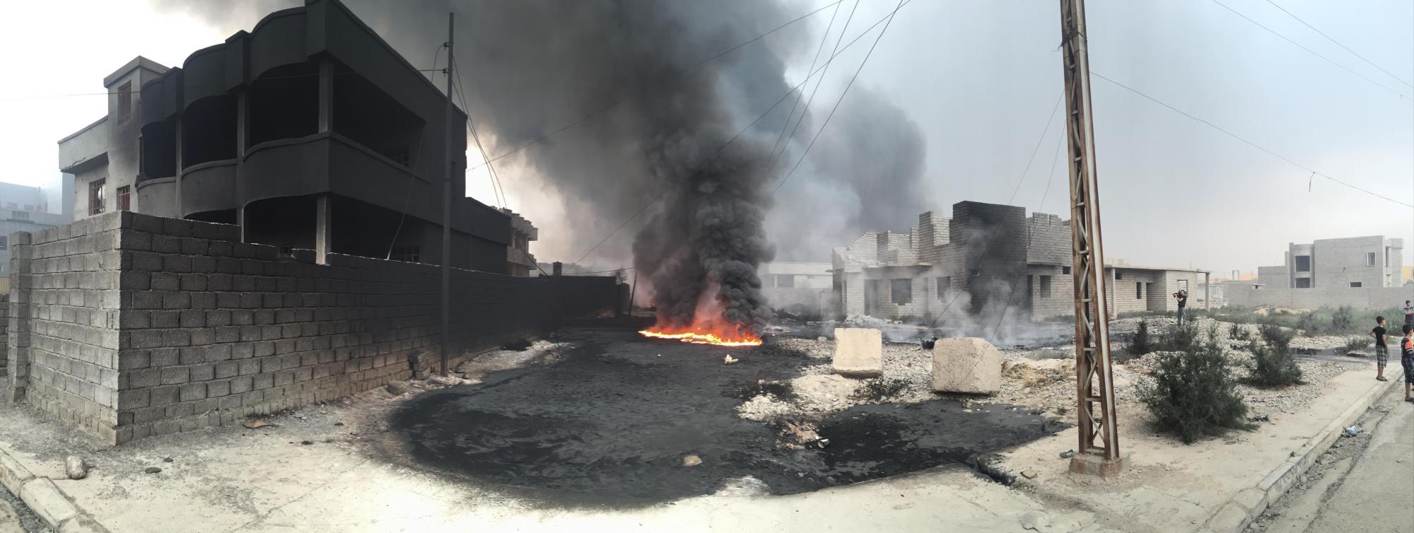 Sebastian Junger- Ir a Siria era, para un periodista occidental, virtualmente suicida después de cierto punto. Por lo tanto, obviamente, no lo hicimos, pero tuvimos la suerte de trabajar con gente, sirios en Siria, que fueron capaces de filmar imágenes para nosotros. También pudimos enviar a algunos periodistas, y Nick pudo ir al norte de Irak donde estaba un poco más seguro y filmar directamente.