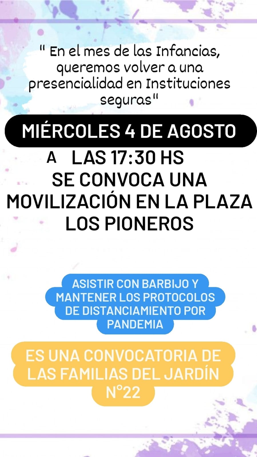 Padres y madres del jardín convocaron a realizar una movilización para el miércoles 4 de agosto a las 17.30 en la Plaza de los Pioneros