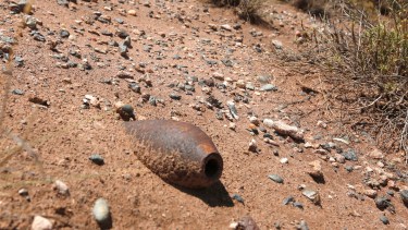 No hace falta caminar grandes distancias campo adentro para encontrar en el piso fierros robustos y oxidados, algunos semienterrados y otros que se dejan ver a simple vista. RIO NEGRO recorrió la zona y, a unos 200 metros del transitado camino petrolero, se topó con algunos vestigios de un misterio que nadie puede explicar. En el suelo había un proyectil de cañón de 105 milímetros y a menos de 20 metros de distancia un proyectil de mortero de 120 milímetros.