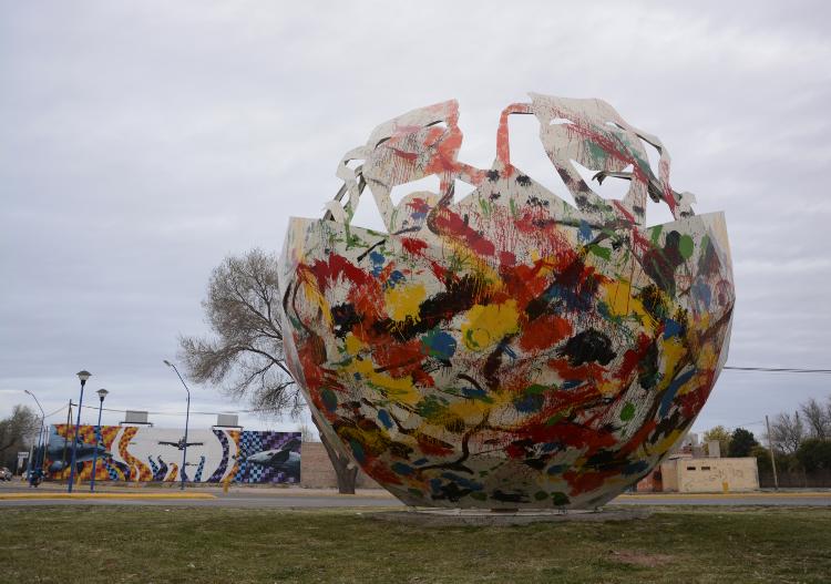 ROCA (AR).- Alumnos, profesores y artistas del Instituto Universitario Patagónico de Artes (IUPA) realizaron una intervención artística sobre el Monumento a las Artes, el que está ubicado en la rotonda de Gelonch y Rosario de Santa Fe.