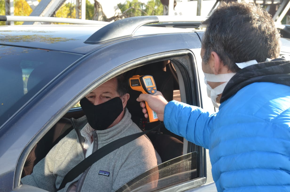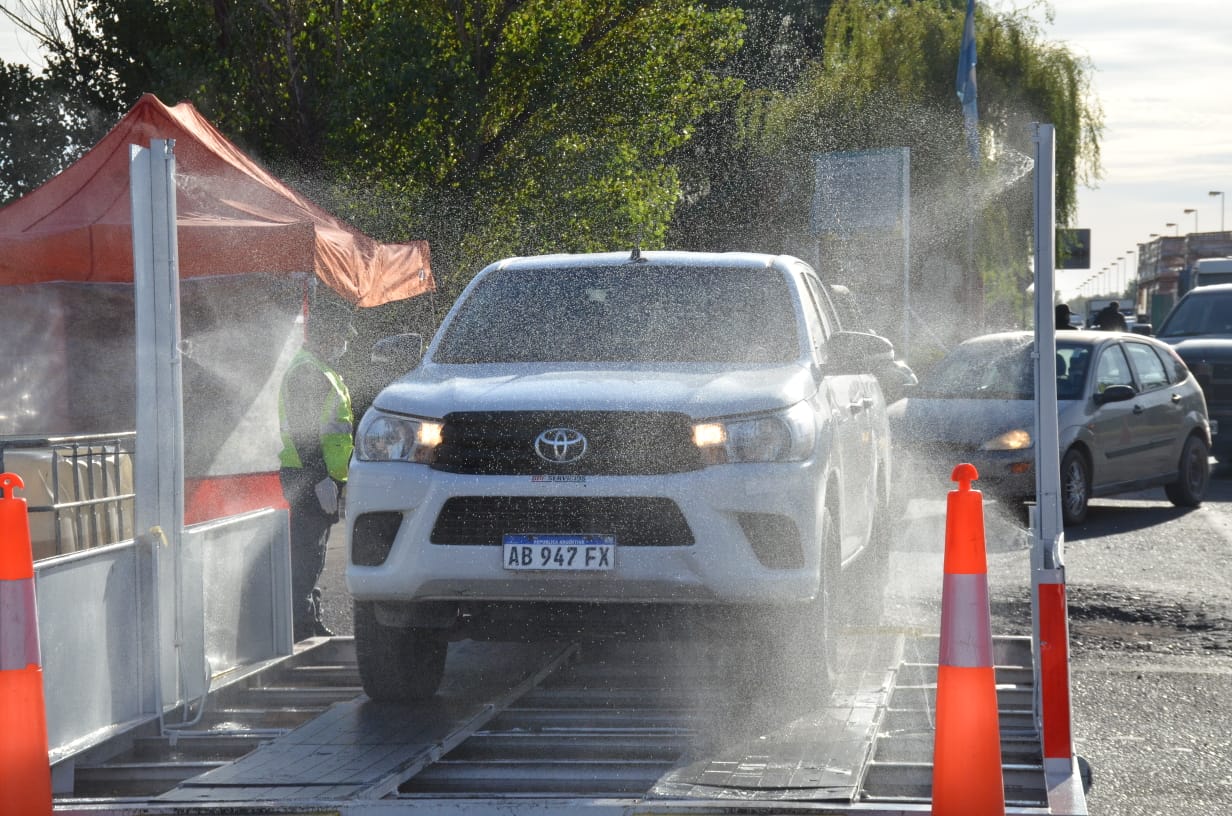 Si bien se informó que el ingreso sólo de las patentes impares había logrado un menor tránsito respecto al resto de los días hábiles, el control de temperatura auto por auto y la desinfección mediante la rampa, hizo más lento el flujo vehicular hoy en los puentes carreteros.