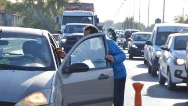 Si bien se informó que el ingreso sólo de las patentes impares había logrado un menor tránsito respecto al resto de los días hábiles, el control de temperatura auto por auto y la desinfección mediante la rampa, hizo más lento el flujo vehicular hoy en los puentes carreteros.