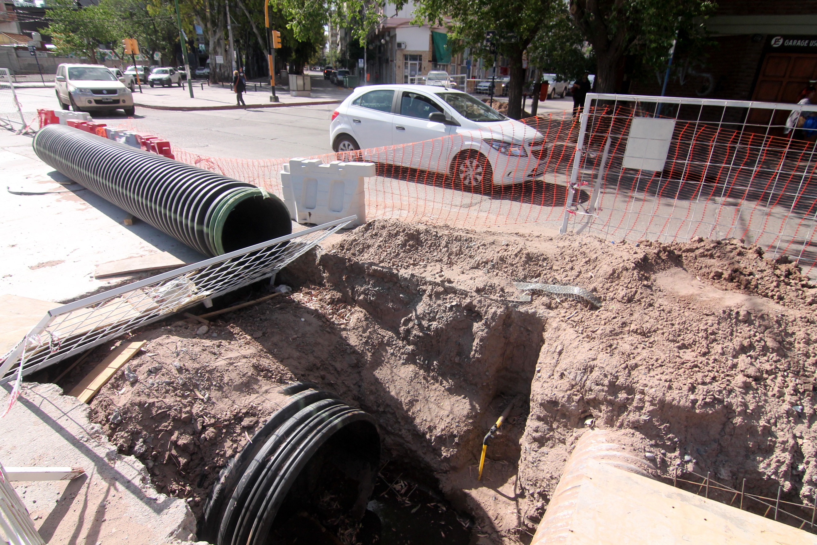 Las tareas responden al empalme de dos megaobras de conducción pluvial (la de Salta y Miguel A Camino) para cuadruplicar la capacidad actual del escurrimiento, se explicó.