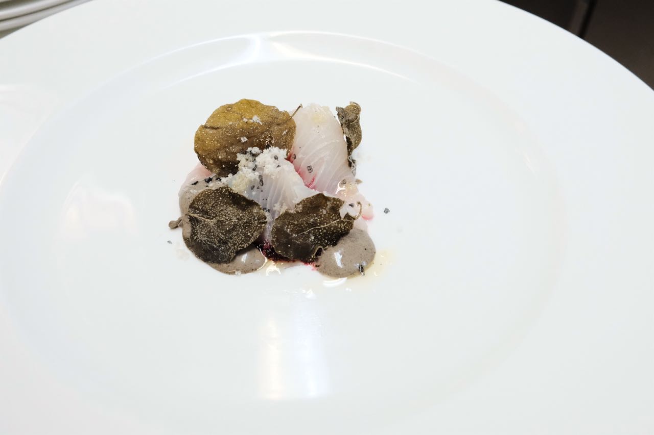 El segundo plato fue un crudo de pez limón con una crema de remolachas y cenizas, increíble.
