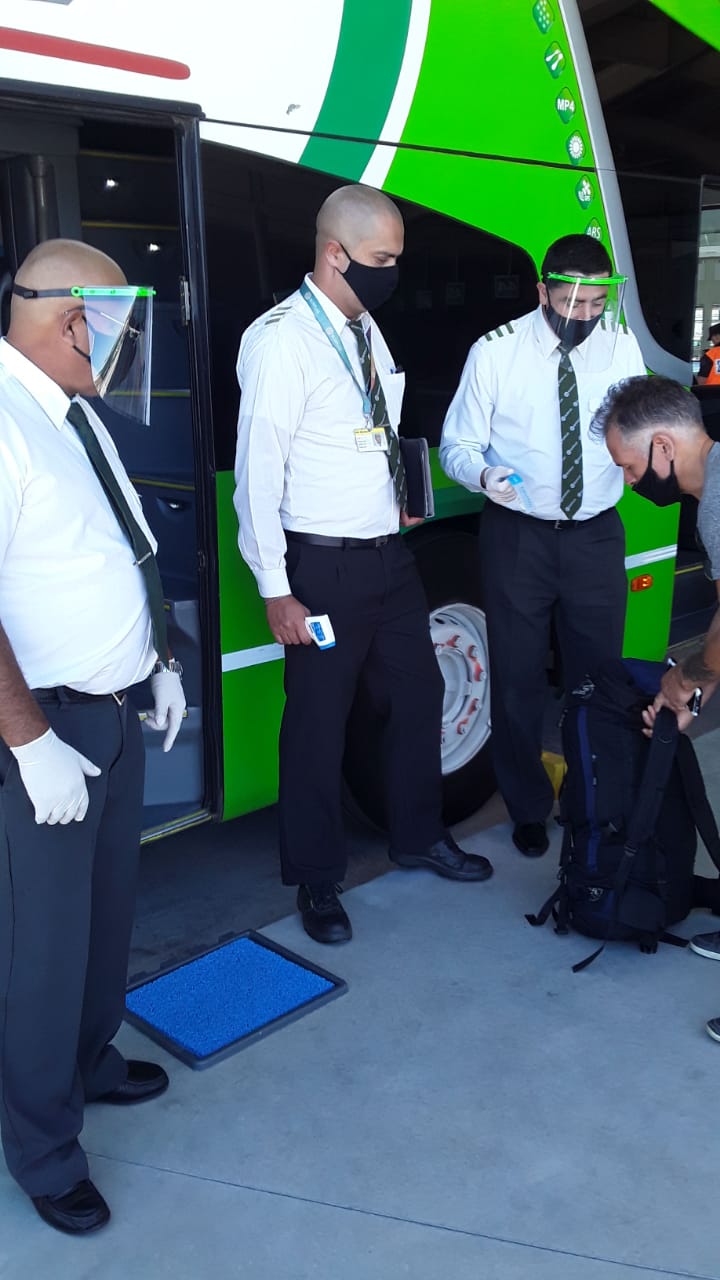 Bajo estrictas medidas sanitarias, tanto de parte del personal como de los pasajeros, el ómnibus de Vía Bariloche partió de la Terminal Dellepiane a las 13.41.