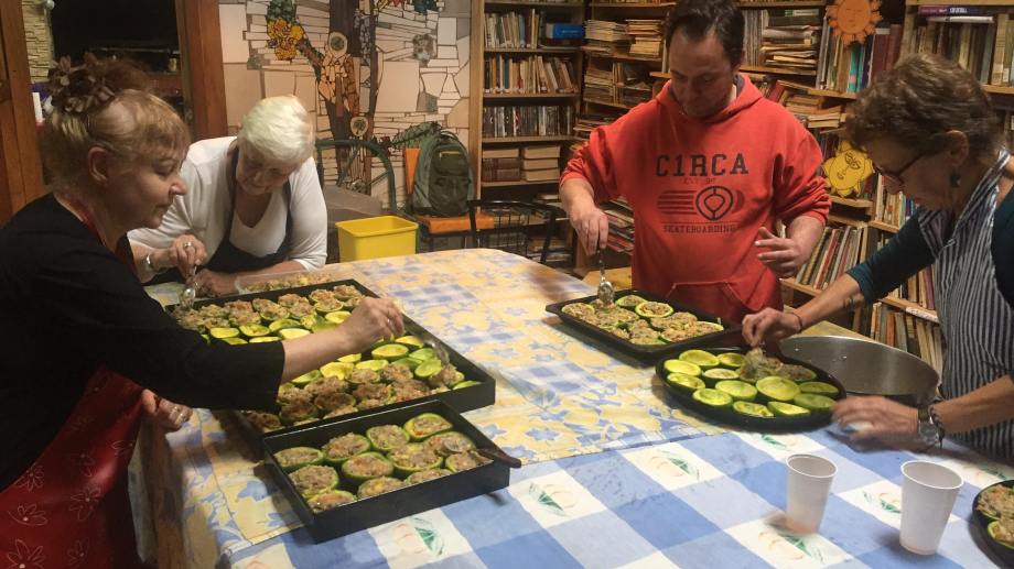 Durante un año este grupo de vecinos se reunió un domingo por mes para elaborar diferentes y nutritivos menúes, que los vecinos seleccionados por asistentes sociales retiraban semanalmente junto con los libros. Menúes que eran posibles gracias a la donación de materias primas de varios establecimientos o por la donación en efectivo de quienes se enteraban de esta propuesta.