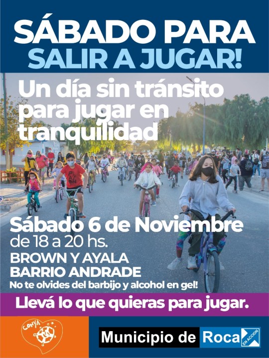 Es importante destacar que esta iniciativa nació por pedido de niñas y niños integrantes del Consejo de Niñez en plena pandemia. Una vez al mes y durante dos horas se puede jugar sin tránsito en las calles, recorriendo diferentes barrios de Roca.