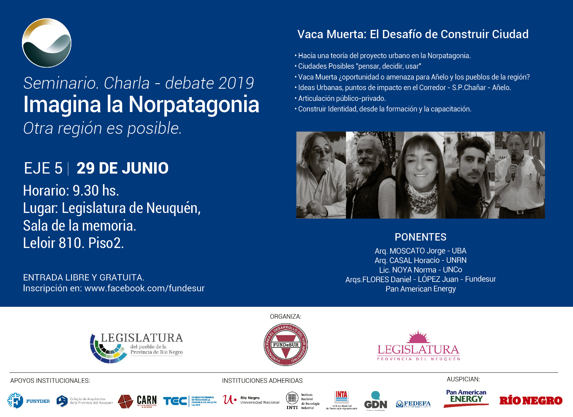 Este sábado 29 desde las 9.30, se lleva a cabo el quinto módulo del ciclo “Imagina la Norpatagonia. Otra región es posible”, organizado por FUNDeSUR y por la Legislatura de Neuquén, lugar donde se realizan los encuentros. También participa el parlamento rionegrino.