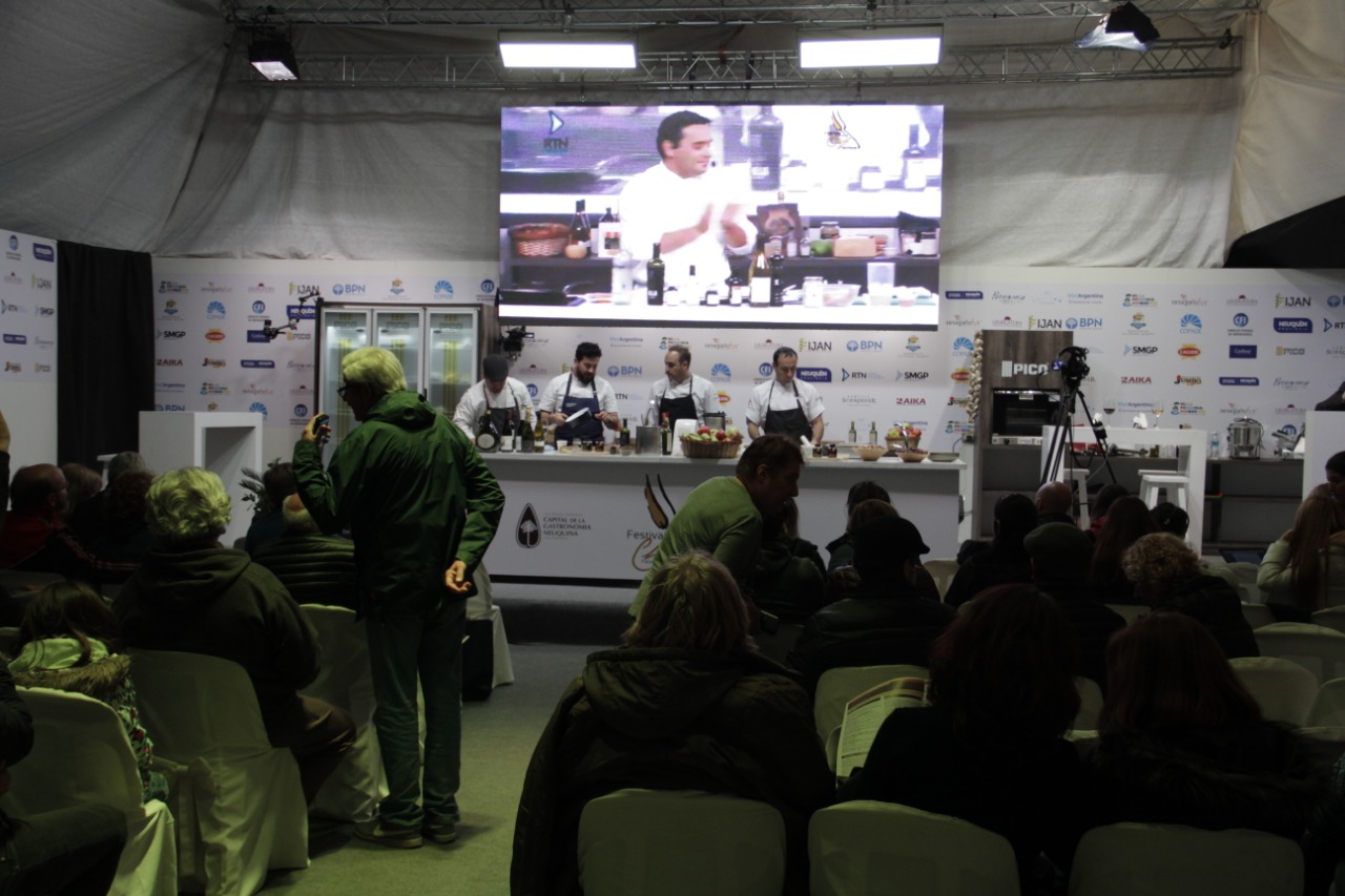 A las 19: 30 fue la inauguración formal con la presencia del gobernador neuquino y a las 20 Dolli Irigoyen enseñó a cocinar una tapa de asado con ensalada tibia de lentejas y piñones. Morcillas y manzanas.