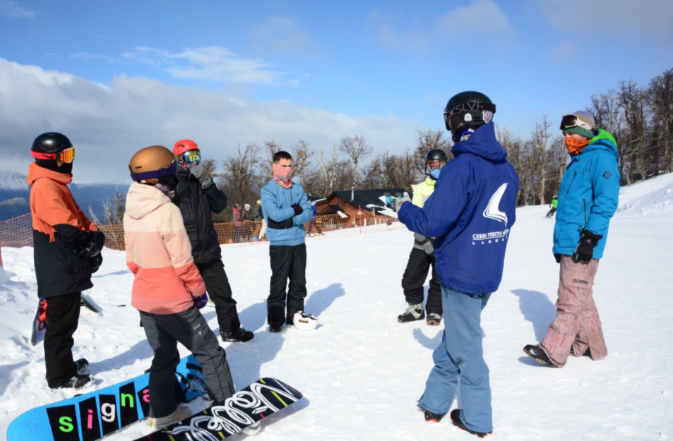 De jueves a domingo, 150 jóvenes de El Bolsón se entrenan y capacitan con el objetivo de ser, en un futuro cercano, instructores de esquí y snowboard validados por la Asociación Argentina de Instructores de Esquí, Snowboard y Pisteros Socorristas (AADIDESS).