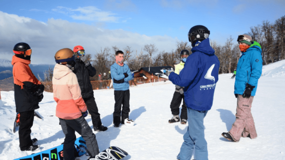 De jueves a domingos, la montaña de El Bolsón se llena de vida con los 150 jóvenes que se capacitan con el objetivo de ser en un futuro cercano instructores de esquí y snowboard.