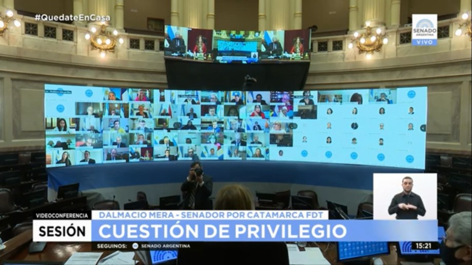 En la sesión, conducida por la vicepresidenta Cristina Fernández de Kirchner, participan 65 senadores, la mayoría conectados en forma remota.