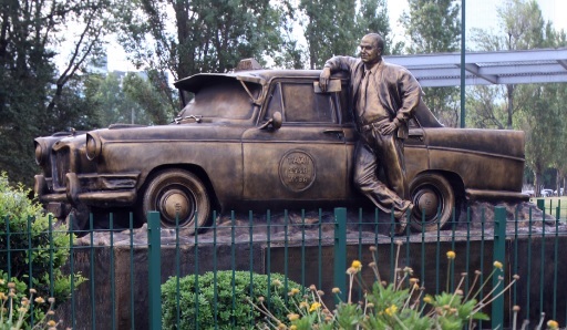 Es un Siam Di Tella 1500, modelo ´61, emblemático auto argentino utilizado por miles de taxistas porteños e inmortalizado con un monumento en barrio Puerto Madero, junto a un canchero chofer de campera y corbata.