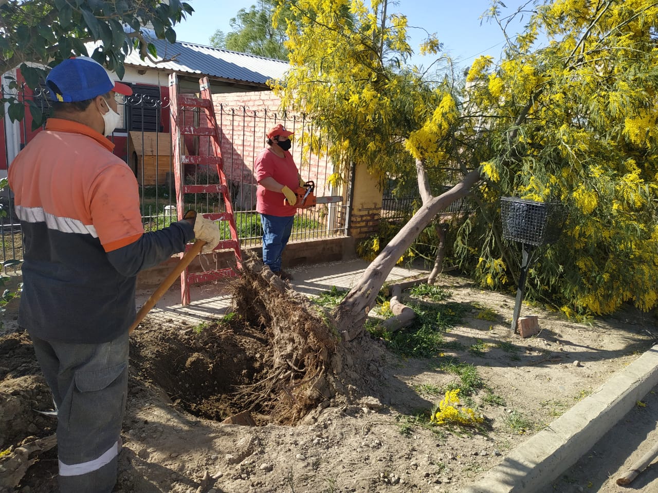 Defensa Civil de Senillosa debió asistir a un domicilio por la caída de un árbol situado en la vereda.