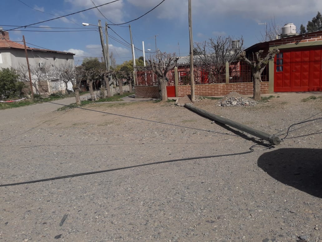 La misma situación con el suministro sucede en Centenario. Los árboles caen sobre el tendido y provocan la caída de los postes que sostienen los cables.