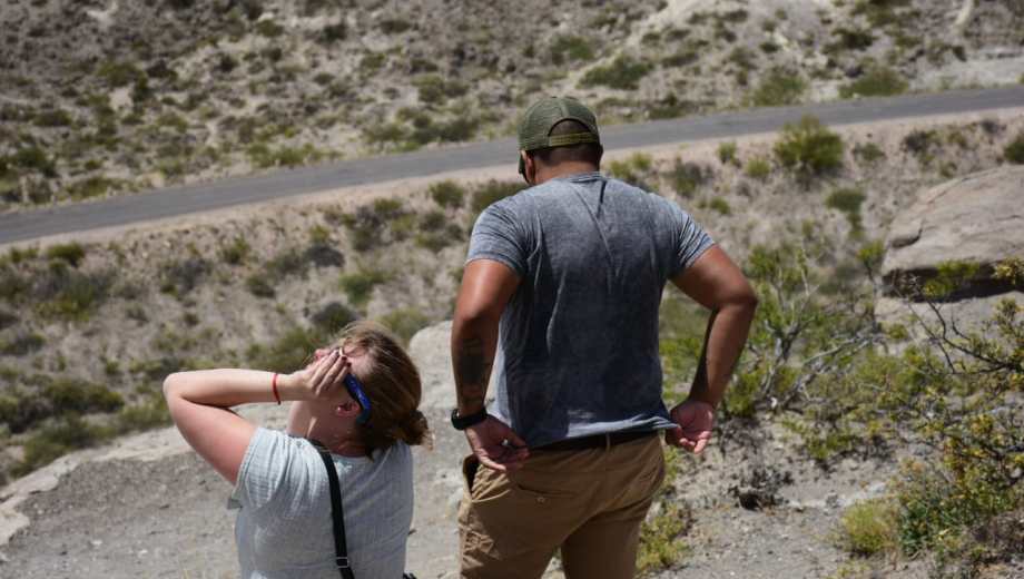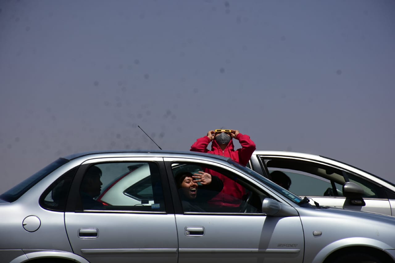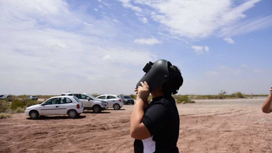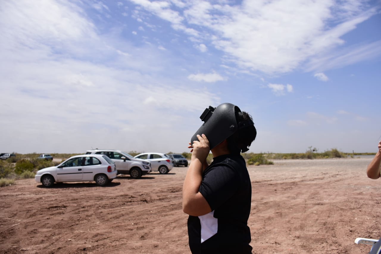A pesar del viento, miles de personas buscaron desde temprano el lugar ideal en la zona de bardas, al sur del río Negro, para observar el eclipse que en esta región se pudo ver en un 97%, según explicaron los especialistas.