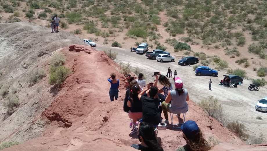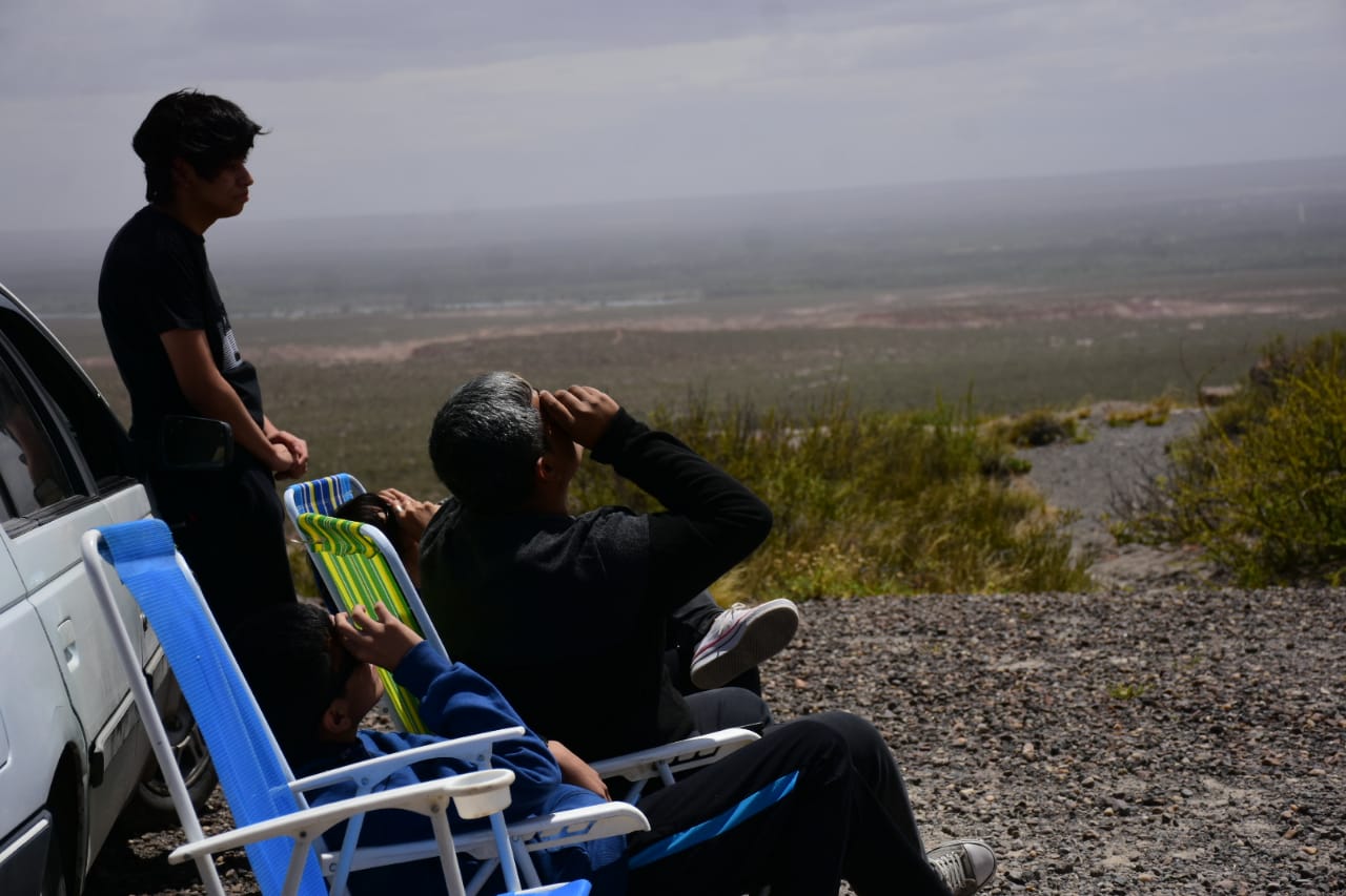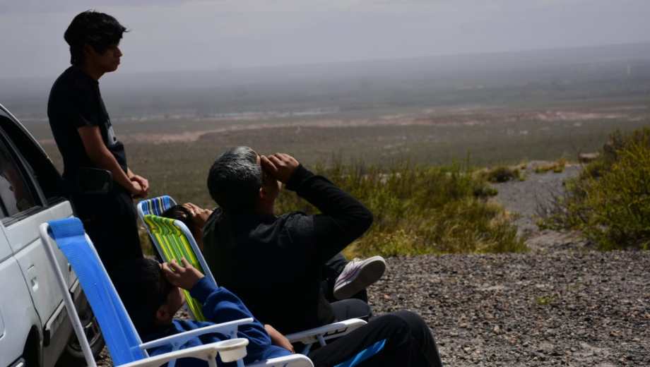 El viento no impidió ver el eclipse desde las bardas, en Roca