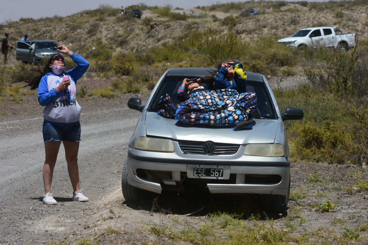 Podríamos decir que por el escenario, parecía un día de fin de semana. En autos, casas rodantes, camionetas y motos, los vecinos de Roca buscaron el punto más alto de referencia para ver el fenómeno que recién se volverá a ver en esta región en el año 2048.