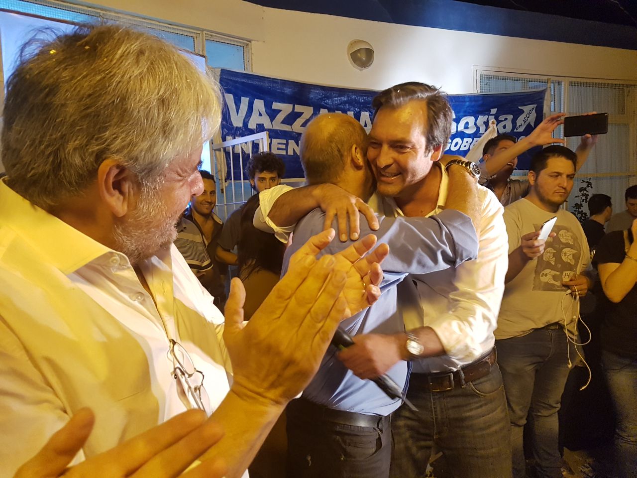 Carlos Vazzana celebra en la Unidad Básica, junto a otros referentes del partido, luego del cierre de las urnas.