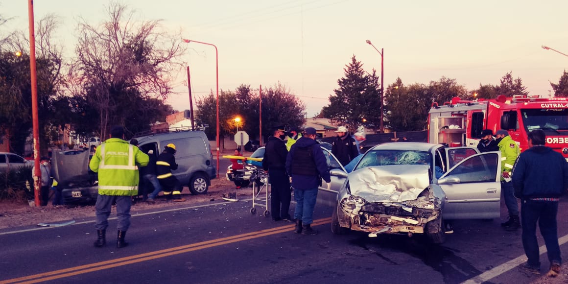 Un fuerte choque ocurrió en la Ruta 22 y su intersección con Santa Isabel, en Cutral Co, entre dos vehículos. El auto involucrado era conducido por una joven embarazada de seis meses, el otro rodado era una camioneta del tipo utilitario. Los bomberos voluntarios debieron acudir para colaborar a retirar a la conductora del rodado que fue trasladada al hospital. Un niño de 9 también resultó con lesiones.