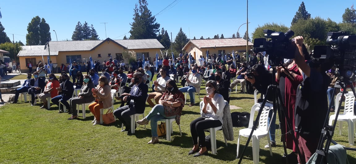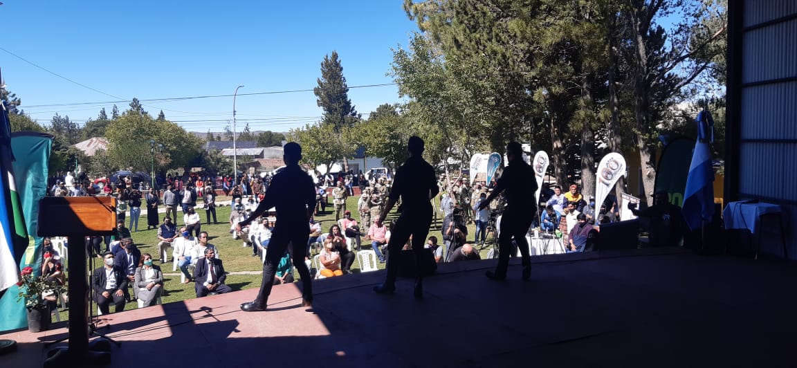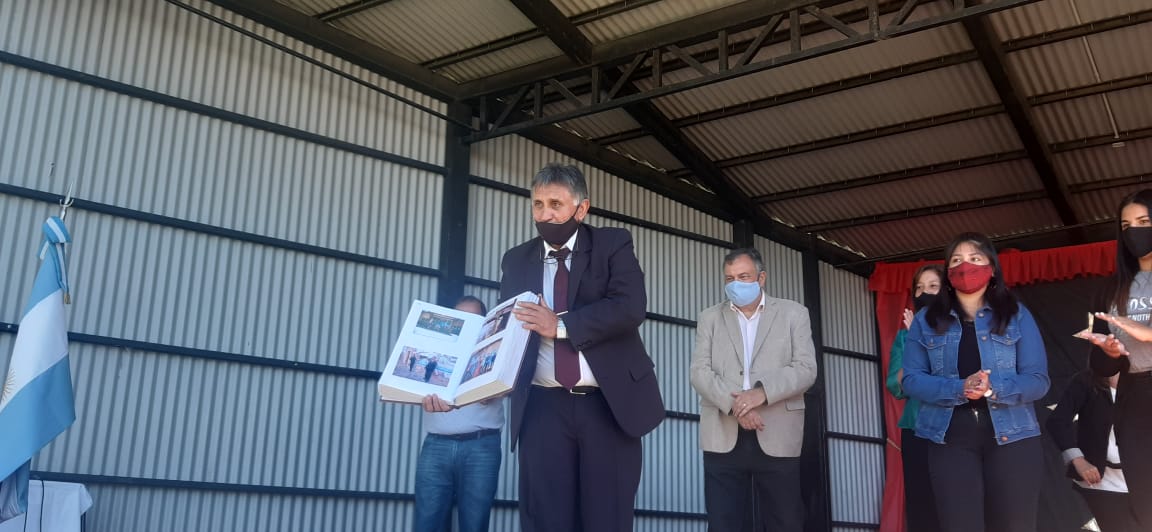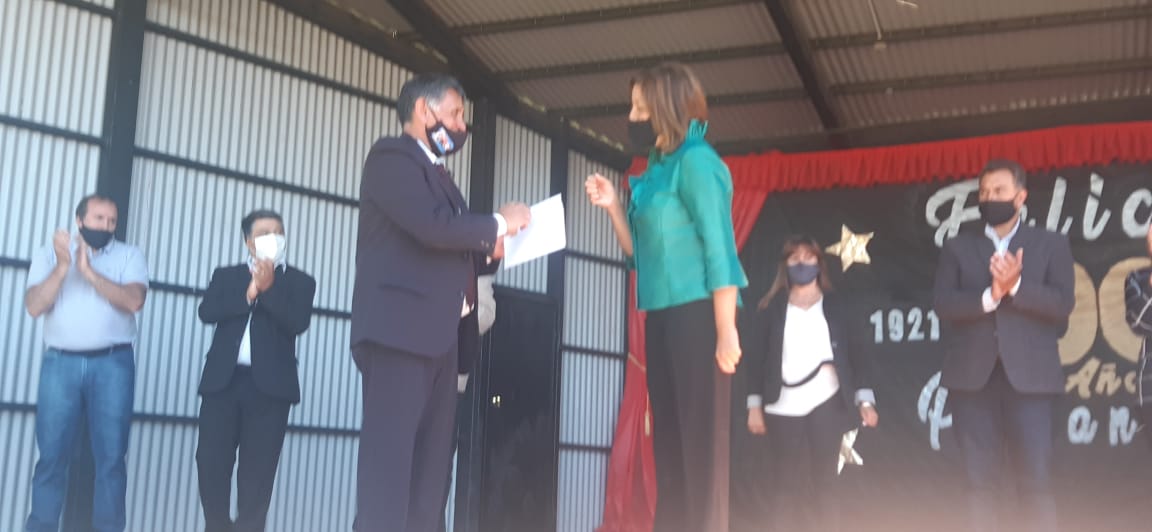 Luego en la Plaza de Las Madres se desarrolló el acto protocolar cumpliendo con los protocolos preventivos. Allí el intendente recibió aportes por $4.150.000 para luminarias, refacción de viviendas rurales, mejoramiento del Paseo del Centenario, para el camping municipal. El club Nehuen recibió $150.000 para viajes.