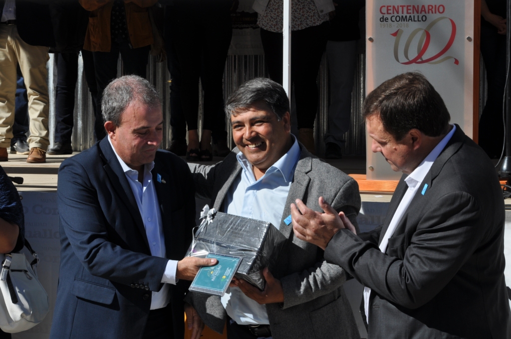 En el marco del acto, el municipio de Comallo recibió aportes de la provincia por $1.435.000 y hubo reconocimientos a antiguos pobladores, ex comisionados de fomento y ex intendentes. También se firmaron convenios para la ejecución de la segunda etapa de la obra de agua potable y para la pavimentación de la avenida San Martín.
